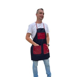 Avental Especial Jeans e Couro Vermelho - Churrasco - Brasil