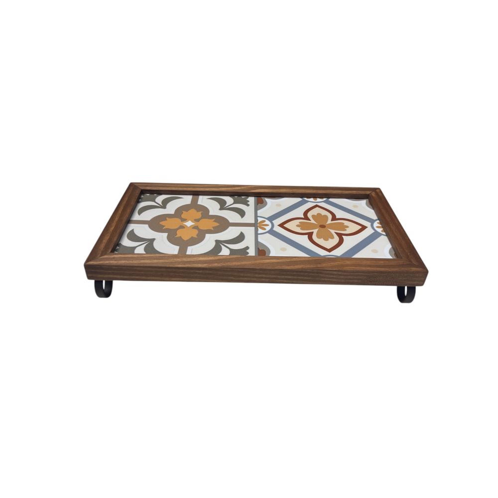 Bandeja decorativa de madeira com espelho 60 x 35