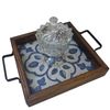 Bandeja feita mão de madeira, ferro e azulejo com detalhes Portugueses colonial.