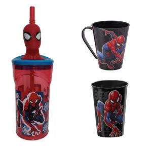 Conjunro copo 3D com canudo, copo e caneca Homem Aranha