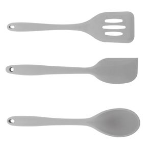 Colher, espátula vazada e espatula de silicone cor cinza 28c
