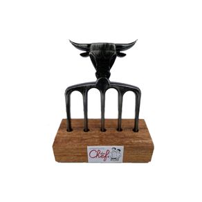 Tridente 5 pontas Churrasco Touro Bravo suporte prata velha
