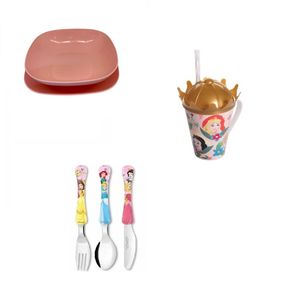 Conjunto pratos, talheres, caneca canudo e tampa Princesas