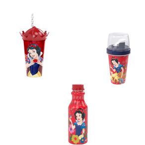 Conjunto BRANCA DE NEVE Garrafa Shake Canudo coroa Vermelho