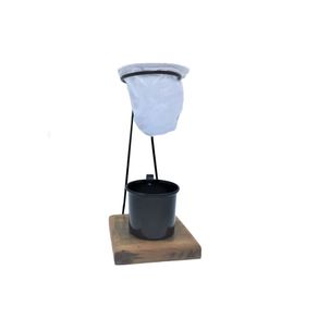 Esse kit é composto pela base madeira de demolição, coador de pano, 4 (quatro) canequinhas Preta.