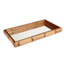 Bandeja decorativa de madeira com espelho 29 x 18