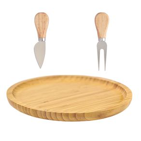 Kit bandeja bambu 25 cm, cortador e garfo para queijos