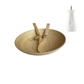 Saladeira de Bambu 30cm com Pegador e azeiteiro