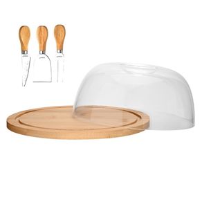 Queijeira bambu 19 x 8 cm tampa transparente e cortadores