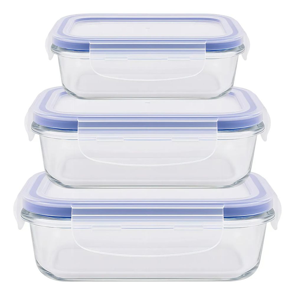 Tres Potes Hermeticos de Vidro retangular 330/600/1040ML